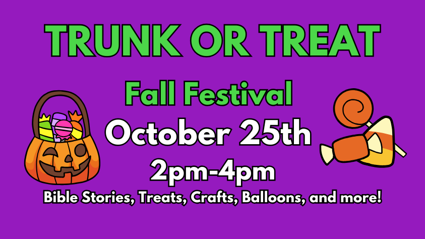 We’d love to have you join us for our trunk-or-treat event! We will feature Bible-themed trunks, plenty of treats, crafts, snacks, games, a balloon twister, and more! Come to the West parking lot of Risen Savior from 2-4 PM on Saturday, October 25th. Costumes are optional. You can bring a bucket for treats or pick up a bag at the event. If you’d like to contribute or host a trunk, we’re always happy to have help! Please sign up here to be part of the fun.